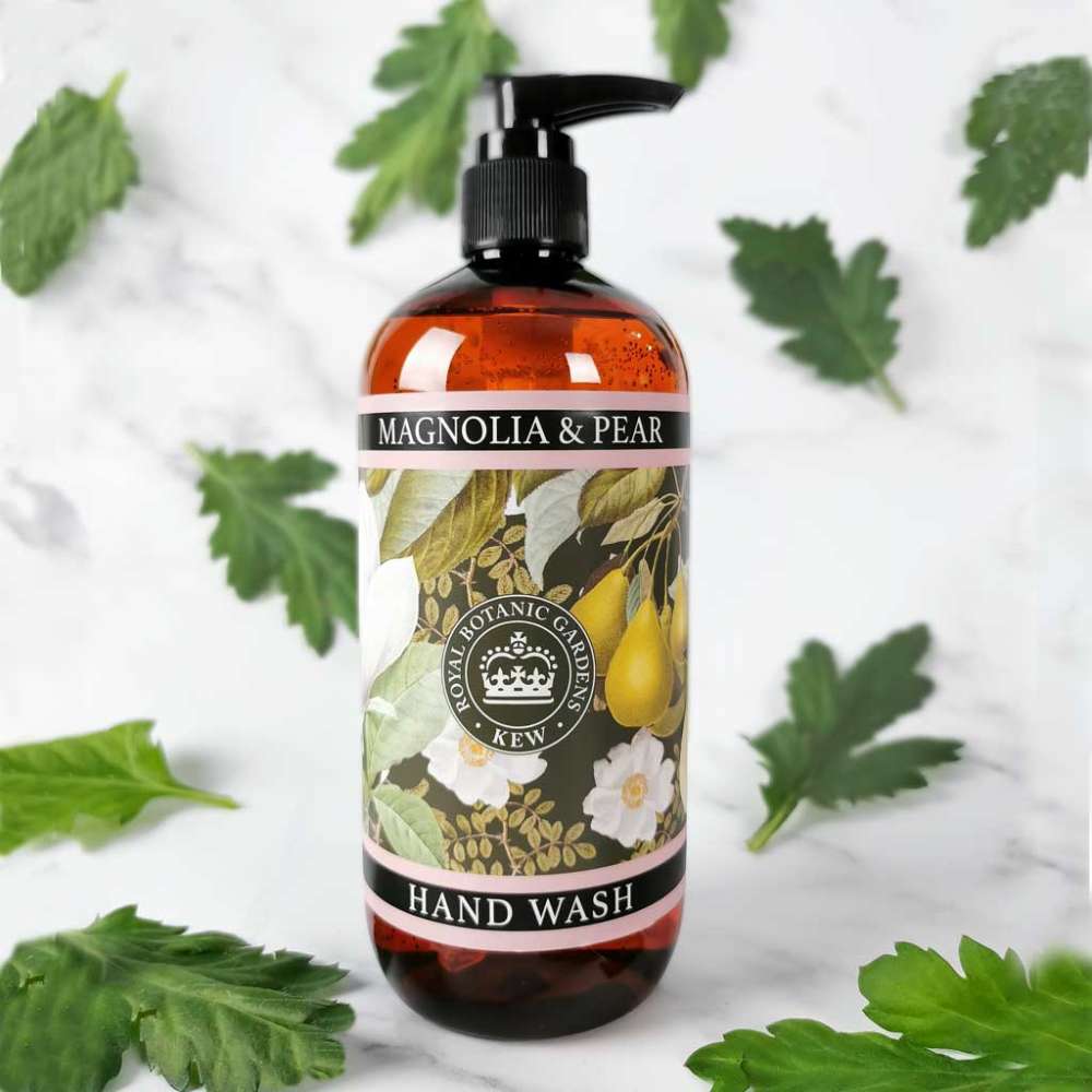 The Kew Gardens Magnolia and Pear Hand Wash, with a blend of beautiful florals, this fragrance features magnolia and pear as leading notes. Orchid, freesia, rose and Muguet creates the heart of the fragrance, with a musky base of dry amber and patchouli creates this evocative scent.